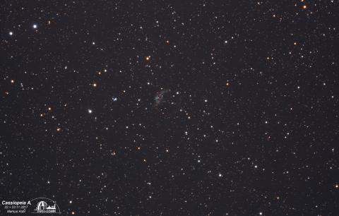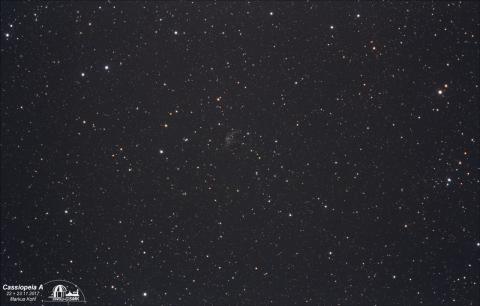 Cas A befindet sich in rund 11.000 Lj. Entfernung und hat einen Durchmesser von ca.10 Lichtjahren.